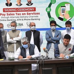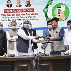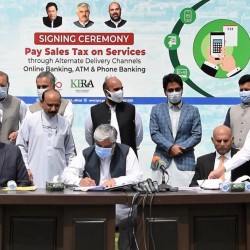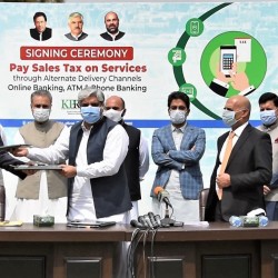The tripartite agreement was signed amongst the Government of Khyber Pakhtunkhwa, State Bank of Pakistan and 1-Link on Tuesday at the Civil Secretariat Peshawar. KP Finance Minister Taimur Khan Jhagra and Spokesperson KP Government Kamran Khan Bangash attended the ceremony.