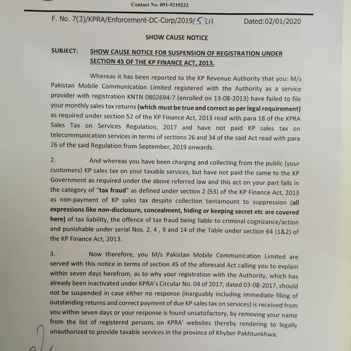 November 14, 2019Published by KPRA Administrator on November 14, 2019Categories NewsThe Authority issued a suspension of registration notice to the big Telecom Company of PakistanA Registration Week of KPRA, launched for taxpayers’ facilitation and tax acculturation in Khyber Pakhtunkhwa, concluded in Charsadda on Friday.